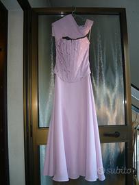 Vestito lilla lungo con corpettino rigido tg. 42 e stola per le spalle. adatto a cerimonie ed occasioni importanti.