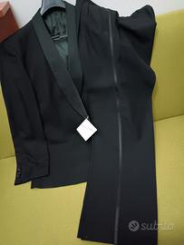 Vestito per cerimonia elegante nero con particolare del modello sia la giacca e anche il pantalone nuovo senza usato con cartellino taglia 50