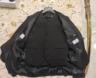 Vestito per cerimonia completo per ragazzo taglia 42 , Giacca pantalone, gile , camicia cravatta e scarpe taglia 38 utilizzato solo una volta per una cerimonia il vestito e della Nazareno Gabriele cosi come la camicia ed il resto.
