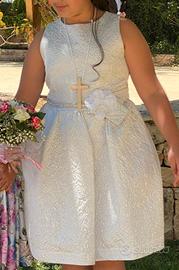 vestito per comunione 14 anni in tessuto damascato, grigio chiaro perlato