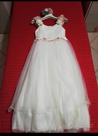 vestito per comunione e per damigella usato solo un giorno con fermaglio per capelli e tutti fiori applicati di seta