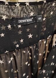 Vestito nero trasparente con stelline. Lungo fino a sopra le ginocchia. Fantasia di stelle. Maniche lunghe. Indossato un paio di volte, tenuto con cura, come nuovo.