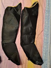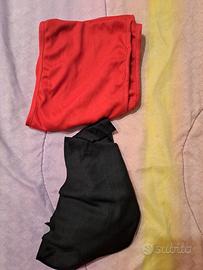 Vestito Pirata da uomo composto da mantelli/ casacca lungo, copristivali, cintura rossa e bandana nera. Non ha il cartellino ma è nuovo, mai stato indossato.