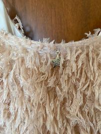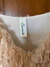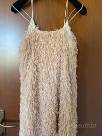 Vestito piumato collezione Souvenir Estate ‘19. Le piume sono sintetiche e all’interno una sottoveste di cotone. Veste attilato, ottimo per aperitivi o ricevimenti.
