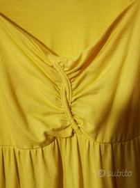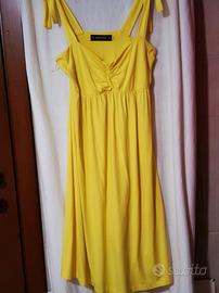 fresco vestito prendisole colore giallo limone in viscosa designer Dress pepita elasticizzato come nuovo taglia 44