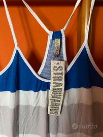Bellissimo vestito lungo, estivo a righe multicolor del marchio Stradivarius, mai usato, con ancora cartellino attaccato, modello con spalline sottili, per un look casual e chic.