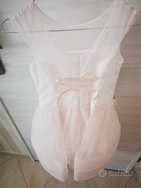 Vendo vestito nuovo prima comunione rosa laminato e piume alla cintura con coprispalle abbinato