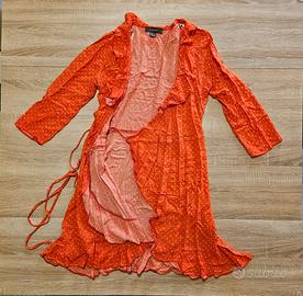 Vestito donna Primark. Modello a maniche lunghe aperto con chiusura a lacci e scollatura, fantasia a pois bianchi su rosso. Tessuto leggero perfetto per l'estate. In ottime condizioni, come nuovo, vendo per decluttering.