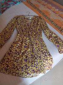 Vestito primavera a fantasia maculata giallo glicine con cintura TG 42 nuovo mai messo