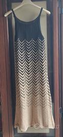 Vestito femminile color oro e nero, con bretelline Leggero, fresco, primaverile/estivo Misure: - lunghezza 93cm - Larghezza spalle 41cm Indossato 2 volte. Praticamente nuovo In ottime condizioni Tessuti: - 80% viscosa - 20% poliestere Taglia: M Zona di vendita: Bologna NO perditempo