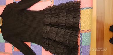 vendo vestito ragazza/donna nero con pizzi, misto lana, ideale per occasioni e non, taglia 42, senza difetti, usato pochissimo, lavato e sanificato, euro 20.