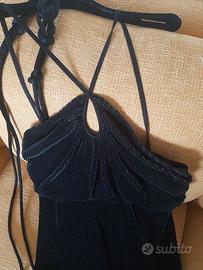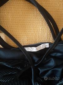 Vendo vestito nero taglia 44 usato una volta. Tessuto plisse', possibilità di mettere cintura che fa parte dell'abito o lasciarlo scendere libero. Chiusura incrociata intorno al collo, scollatura con "goccia" davanti