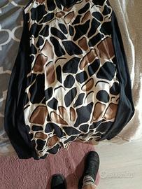 nuovo vestito lungo a. fantasia ottimo per matrimonio elegante ma anche per uscire la sera marca di Nazareno gabrielli originale taglia XXL ma non e' enorme!
