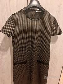 Vestito OVS a pied-de-poule – Taglia XS – Come nuovo Modello a tubino corto, fantasia pied-de-poule nero e beige, con finiture in ecopelle nera sul girocollo e sulle tasche anteriori. Chiusura con zip sul retro. Maniche corte. Stile elegante e versatile, perfetto per un look classico chic. 📏 Taglia: XS 🎨 Colore: nero/beige ✨ Condizioni: ottime / come nuovo 🏷️ Marca: OVS