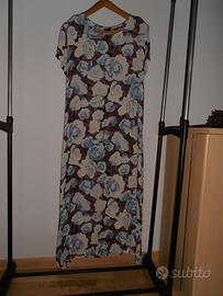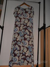 Vestito donna taglia M, a rose azzurre e foglie scure, leggero tessuto viscosa, come nuovo.