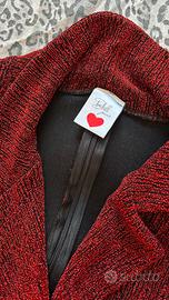 tubino rosso brillantinato con bottoni oro, zip laterale e scollo. Taglia S, ma elastico. Utilizzato solo una volta.