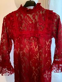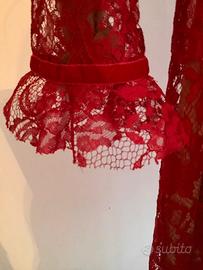 Bellissimo vestito rosso elegante in pizzo,