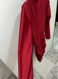 Vestito corto rosso da sera veste aderente e contiene imbottitura sulle spalline con arricciatura dietro,mai utilizzato mi è stato regalato a Natale