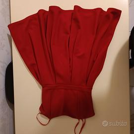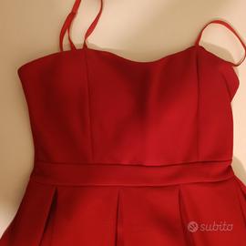 Vestito rosso con spallina, punto seno leggermente imbottito per maggiori sostegno e vestibilità. Cinturino in vita, gonna larga a falde e cerniera posteriore.