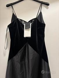 Vestito satinato marca Zara, taglia XS, con scollo dritto, nuovo con cartellino, materiale in velluto e pizzo, con spalline sottili. Tessuto combinato satinato e velluto. Scollo a V sulla schiena. Prezzo 30€ escluse ss.