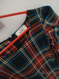 vestito corto scozzese Vicolo con maniche arricciato sulle spalle