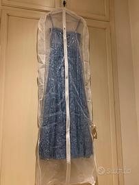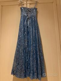 Taglia S. Magnifico vestito lungo da sera per capodanno, 18 anni, matrimoni e feste. Con brillantini e paillettes. Vestito con corpino superiore che prosegue con ampio tessuto a ruota. Magnifico tessuto con all'interno tulle e sottogonna. Facile da indossare perché ha lampo e apertura con nastri regolabili sulla schiena che rendono ancora più particolare l'abito.