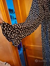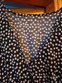 Vestito lungo Shein taglia 1XL Sfondo nero con fiorellini stilizzati bianchi