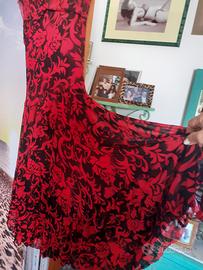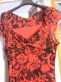 Vestito nero con rose rosse. Maniche corte, alla gonna due balze. Leggermente elasticizzato. Veste una M. Per le sere d'estate e per ballare tango. Simpatico.