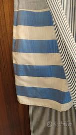splendido vestito formato da 2 pezzi attaccati: vestito corto con gonna a fasce blù lurex e sopra vestito lungo leggero con ampio spacco laterale. indossato una volta e lavato.