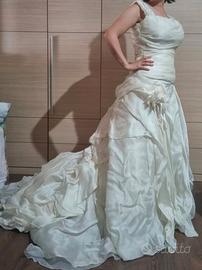 Vestito da sposa, diviso in corpetto e gonna, in seta, prezzo originale 4000, ha solo dei difetti sulla coda facilmente rimediabili da una sarta, completo di porta vestito, posso inviarlo sottovuoto