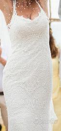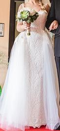 Abito sartoriale su misura taglia 40/42 a Sirena di pizzo macramè + Gonna di tulle con richiami macramè nella parte superiore applicabile e staccabile velocemente con bottoncini automatici trasparenti.
