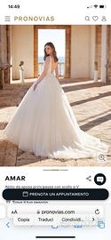 Abito sposa Pronovias, tg. 44/46, modello Amar, col. Bianco, con copri spalle, disponibile anche con sandali argento (numero 39,5) usato 1 volta. Uno splendido abito principessa da vera star by Marchesa, con applicazioni fiorite in pizzo 3D che conferiscono al corpetto una texture romantica e un look etereo. Presenta uno scollo a V profondo, seducenti ritagli laterali color carne e una voluminosa gonna con strascico in tulle e raffinate perline artistiche. Vestito pagato € 3.300,00.