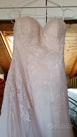 Splendido vestito da sposa con base bianco panna e rosa cipria. Finemente decorato in pizzo su corpetto e alla base della gonna. Acquistato da Nicole spose. Brandcolette Taglia S / IT 40 / EU 36 Condizioni Ottime Materiale Chiffon, Pizzo Colore Rosa, Panna