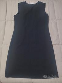 vestito medio corto, davanti in ecopelle, design accattivante,senza maniche, scollo rotondo cuciture in vita