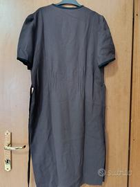 vestito nuovo marca Giovanna Piperno, 100% lana, foderato, color marrone con bordature nere, aperto avanti con bottoni e cinta, taglia 48