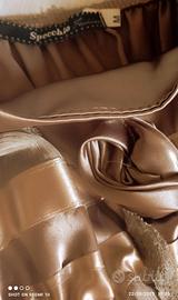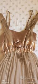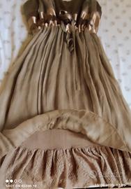 vestito taglio stile impero con doppie spalline colore sabbia scuro lunghezza al ginocchio della linea Specchio di Piazza Italia, taglia M