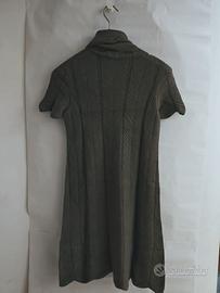 Vestito Talco invernale corto in viscosa, angora e poliestere. Collo alto, manica corta, traforato con fantasia a spina, di color grigio-verde. Taglia I (S/M) elasticizzato. Dalla spalla alla fine del vestito 83cm, circonferenza seno 78cm.
