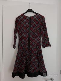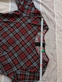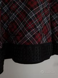 Vestito scozzese con tartan color rosso bordeaux grigio e nero, lunghezza 88cm e per le altre misure si vedano le foto. Il bordo inferiore nero in tessuto l'ho aggiunto io per fare in modo che il vestito sia sì corto ma non eccessivamente in modo che sia più pratico e versatile per qualsiasi occasione. Taglia XS o S, controllare le foto per le misure esatte!