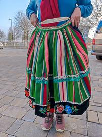 Completo tradizionale slavo composto da vestito (corpetto con gonna ricamati a mano) e coprigonna/grembiule (anche questo ricamato a mano) che si posizione sopra la gonna completando il vestito. Vestito di inestimabile valore per la preziosità dei ricami eseguiti a mano presenti sul vestito.