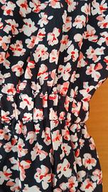 Vestito foderato a fiorellini con fondo blu ,elastico in vita e tasche con cerniera davanti