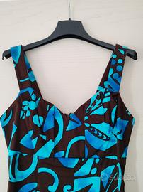 Vestito tubino bianco ghiaccio multicolore taglia 40 misure fino a 85l, vita fino a 70, fianchi fino a 90 cm lunghezza 95. Spacco sul retro. Composizione 97% cotone 3% elastina