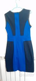 vestito tubino invernale smanicato blu con inserti
