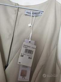 Vendo causa inutilizzo tuta elegante taglia S marca Rinascimento. La tuta è di colore nero e beige e ha ancora il suo cartellino. Dietro c'è la chiusura a goccia con bottoncino.