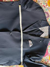 Abito completo da uomo perfetto per il periodo primavera-estate, con fodera 100% in cotone. Molto elegante ma giovanile, grazie al tema floreale della "pochette" da taschino e di tutta la fodera interna. Veste regular la taglia 56.