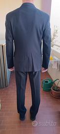vendo vestito completo, giacca e pantalone blu taglia 50 la giacca, 48 il pantalone. È stato usato solo pochissime volte, veste bene una 48, io sono 1,78 di altezza.