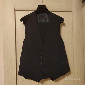 Bellissimo Vestito Carlo Pignatelli, Boutique. Praticamente come se lo compraste in negozio. Taglia 52, blu', doppio petto). Il pantalone e' stato stretto un pochino ed e' stata fatta la piega (ampiamente lasciata la stoffa all'interno). A completo c'e' anche il panciotto-gilet blu'. Io son alto 178 cm circa. Vendo a meta' prezzo (600 euro) e includo pure gli accessori come la cravatta che si lega comodamente con lo strappo (tipo papillon) e quindi il nodo rimane sempre fatto, e come si vede dalla foto, c'e' un punto luce molto fine ed elegante e sobrio di colore sempre blu'. Includo anche la camicia bianca con collo diplomatico Taglia 42 (devo ricontrollare la taglia, non ricordo al 100%), e la canottiera bianca sotto-camicia comprata sempre nella stessa boutique.