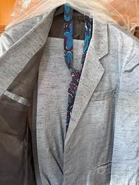 Vestito da uomo misto set. Colore grigio chiaro con striature scure. Compketo di cravatta. Tg 50/52 .