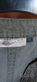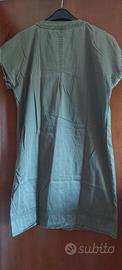 Vendo un vestito in cotone, indossato un paio di volte poiché stretto per la mia corporatura, taglia 46, color verde miliare, marca Kwoman. Chiusura con bottoncini nascosti e due tasche applicate sul davanti.