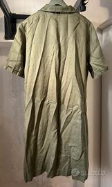 Vestito lungo in puro lino color verde militare, perfetto per l'estate Via Emilia . Modello con colletto e abbottonatura frontale.