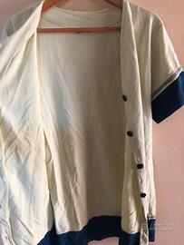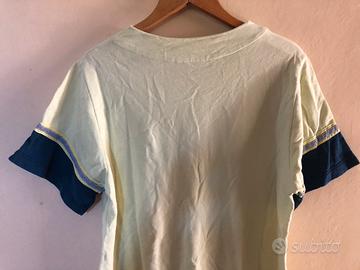 Colore giallo con una banda di colore blu e una di passamaneria in fondo al vestito e nelle maniche.